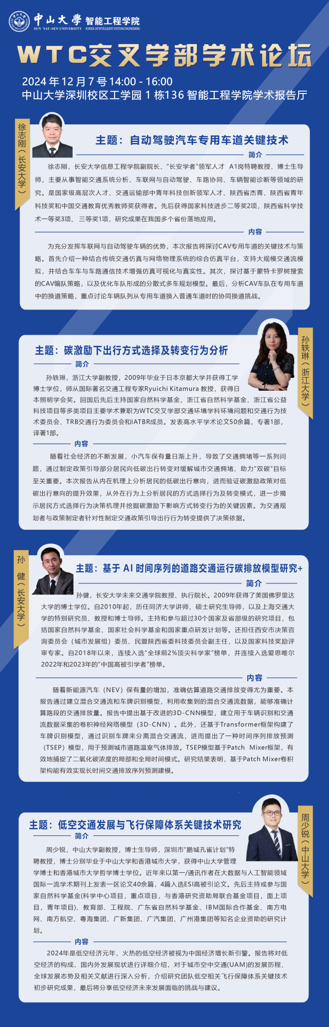 导航痕迹 首页 WTC交叉学部学术论坛 WTC交叉学部学术论坛 WTC交叉学部学术论坛 发布日期:2024-12-09 2024年12月7日下午14点,新葡的京举办“WTC交叉学部学术论坛”主题学术讲座,讲座在深圳校区工学园1栋136举行。 最新讲座 学术讲座 | 陈波立:"面向智慧城市感知、监测和控制的多智能体系统Multi-Agent Systems for Sensing, Monitoring, and Control in Smart Cities”的学术报告讲座2025-07-28 学术讲座 | 杨在:"Carathéodory-Fejér定理与信号频谱分析”的学术报告讲座2025-07-28 学术讲座 | 荣建:"交通工程学知识体系重构:从人内机理到系统优化的研究进展”的学术报告讲座2025-06-24 学术讲座 | 施阳:"自主智能机电系统的先进鲁棒模型预测控制框架”的学术报告讲座2025-05-20 学术讲座 | 占曙光:"高速铁路列车运行调整优化研究”的学术报告讲座2025-03-28