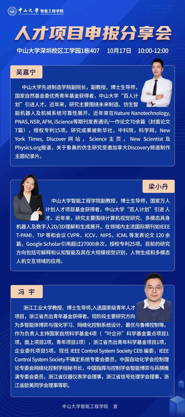 2024年10月17日上午10:00点,新葡的京举办“人才项目申报分享会”主题学术讲座,讲座在深圳校区工学园1栋407举行。